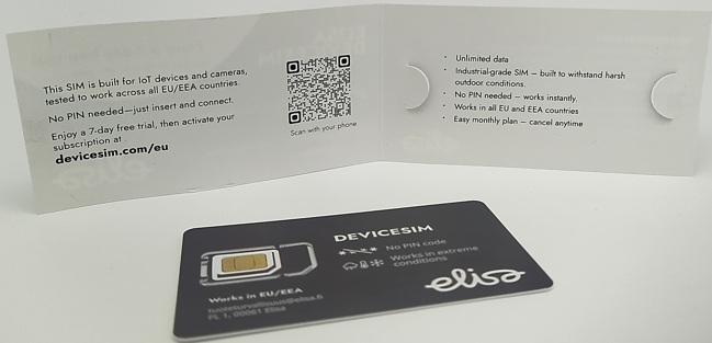 Elisa DeviceSIM card is automatically included free of charge inside every NITEforce wireless trail camera box. You can choose if you want to activate it for your own NITEforce trail camera, or use some local SIM card from your local Network operator.
